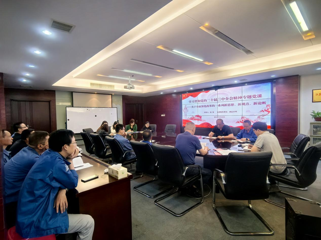 公司支部組織委員、副總經(jīng)理徐翔結(jié)合學(xué)習(xí)貫徹黨的二十屆三中全會精神的有關(guān)工作要求,為全體黨員講授了一堂題為《黨的二十屆三中全會中關(guān)于全面深化改革的一系列新思想、新觀點、新論斷》的專題黨課。黨課從十個方面深入淺出地解讀了關(guān)于黨中央全面推進(jìn)深化改革的重大現(xiàn)實意義和深遠(yuǎn)歷史意義。